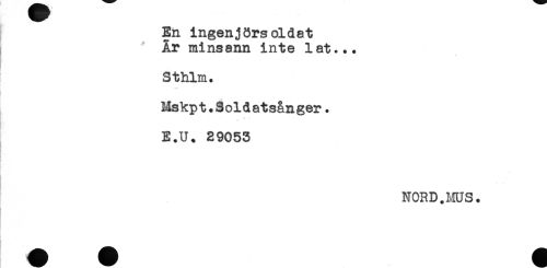 //// En ingenjörs oidet //// Är minsann inte lat... //// * //// Sthim. //// I //// Mskpt. Soldatsånger. //// ** * //// E.U. 29053 //// NORD.MUS. //// . . ////