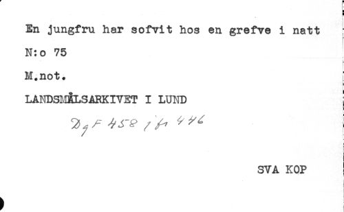 //// h //// H //// H //// ! //// En jungfru har sofvit hos en grefve i natt ; //// i //// N:o 75 //// t //// M.not. //// LANDSHÉLSARKIVET I LUND ! //// SVA KOP //// t //// t //// < //// j ////