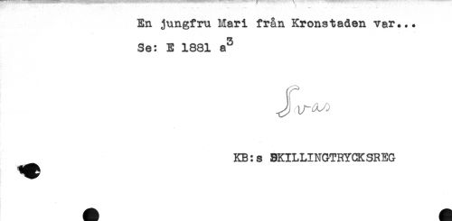 //// En jungfru Mari från Kronstaden var... //// Se: E 1881 a^ //// J tA^ //// ^ KB:s SKILLINGTRYCKSREG ////