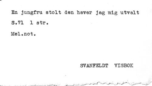//// En jungfru stolt den haver jag mig utvalt //// S+71 1 str. //// Mel.not. //// SVANFELDT VISBOK ////