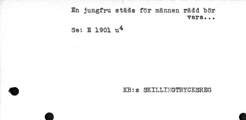 //// En jungfru städs för männen rädd bör //// vara... //// Se: E 1901 u^ //// < //// ^ KB:s SKILLINGTRYCKSREG ////
