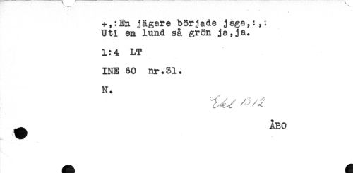 //// +,:En jägare började jaga,:,: //// Uti en lund så grön ja,ja. //// 1:4 LT //// INE 60 nr.51. //// N. //// ^ ÅBO ////