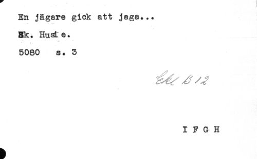 //// En jägare gick att jaga... //// Hk. Huaie. //// " * . . //// 5080 s. 3 //// I F G H ////
