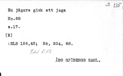 //// En jägare gick att jaga ' //// No. 68 //// s.17. //// ! //// t //// (R) //// ** ; ^ * - //// :SLS 126,43; R6, 204, 68. //// ÅBO SJÖBERGS SAML. ////