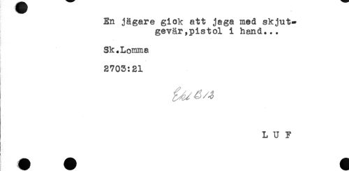 //// En jägare gick att jaga med skjut- //// gevär,pistol i hand... //// Sk.Lomma //// 2703:21 //// L U F ////