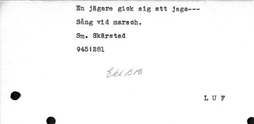 //// En jägare gick sig att jaga--- //// Sång vid marsch. //// Sm* Skärstad //// 9451281 //// # L U F ////