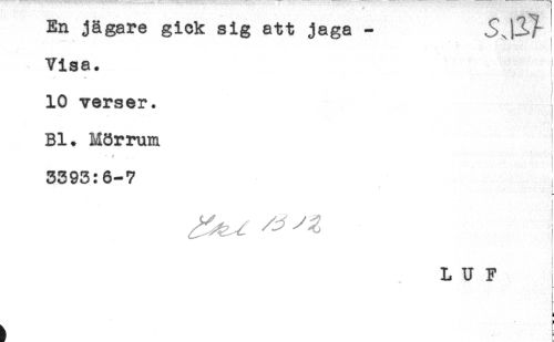 //// En jägare gick sig att jaga - * //// Visa. //// - - '-* f //// v //// t //// 10 verser. //// Bl. Mörrum //// r //// 3393:6-7 //// - //// i //// < //// L U F //// ) //// a //// ^ 't ////
