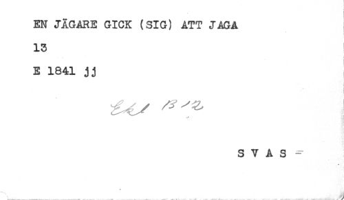 //// i //// EN JAGARE GICK (SIG) ATT JAGA //// . //// 13 //// - i //// E 1841 jj //// : //// i //// * * //// I //// S V A S ^ //// jja ////