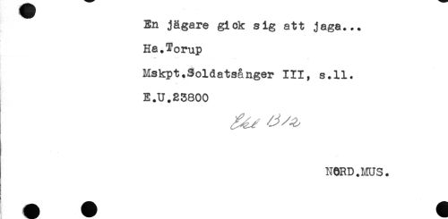 //// En jägare gick sig att jaga... //// Ha.Torup //// Mskpt.Soldats&nger III, s.ll. //// E.U.23800 //// NORD. ms. ////