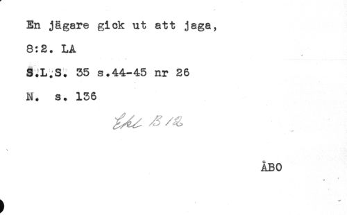 //// -. ^ //// En jägare gick ut att jaga, //// 8:2. LA //// * //// S.L.S. 35 s.44-45 nr 26 //// N. s. 136 //// \ ////