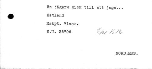 //// En jägare gick till att jaga... //// ^ Estland //// , Mskpt. Visor. //// ! //// i E.U. 38706 //// NORD.MUS. ////