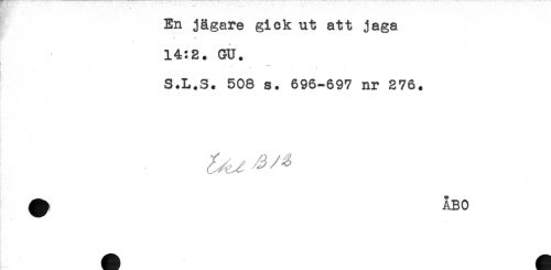 //// En jägare gick ut att jaga //// 14:2. GU. //// I //// r //// S.L.S. 508 s. 696-697 nr 276. //// ^ ÅBO ////