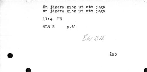 //// En jägare gick ut att jaga //// en jägare gick ut att jaga //// i - //// *. //// 11:4 PE //// SLS 5 s.61 ////
