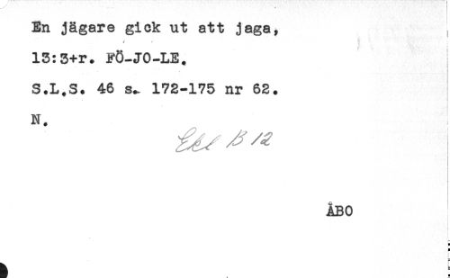 //// ...' * //// En jägare gick ut att jaga, I //// 13:3+r. FÖ-JO-LE. //// S.L.S. 46 s^ 172-175 nr 62. //// N. //// ÄBO //// i //// t //// - //// H //// H ////