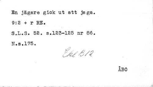 //// En jägare gick ut att jaga. //// i //// i //// 9:2 + r RE. //// S.L.S. 52. s.125-125 nr 66. //// N.s.175. ////