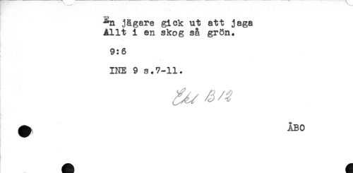 //// ^n jägare gick ut att jaga //// Allt i en skog så grön. //// * //// 9:6 //// INE 9 s.7-11. //// ^ ÅBO ////