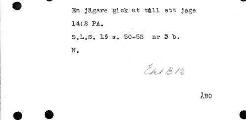 //// ^ En jägare gick ut t&ll att jaga //// 14:2 PA. //// < //// S.L.S. 16 s. 50-52 nr 3 b. //// N. //// ! - ////