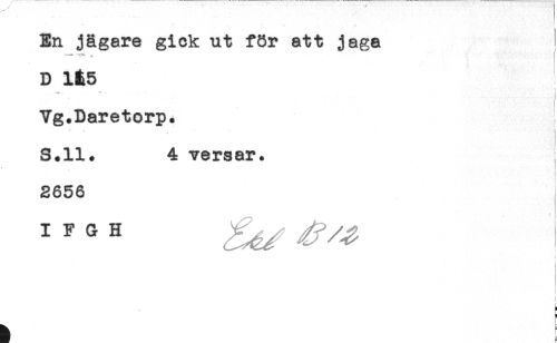 //// En jägare gick ut för att jaga //// D H5 //// Vg.Daretorp. //// t //// S.ll. 4 versar. //// 2656 //// I F S K ^ ^ //// f //// { //// ! //// c ////