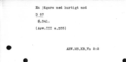 //// En jägare med hurtigt mod //// D 67 //// * //// S.341. //// ^ . - * ** //// (Årw.III s.335) //// * //// ^ ARW.MS.KB.Vs 2:2 ////
