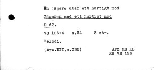 //// A Jägaren med ett hurtigt mod //// D 67. //// * * //// YS 126:4 s.34 3 str. //// Melodi. //// (Arw.TII.s.335) AFZ MS KB //// KB VS 126 //// ,.-*.......-, ////