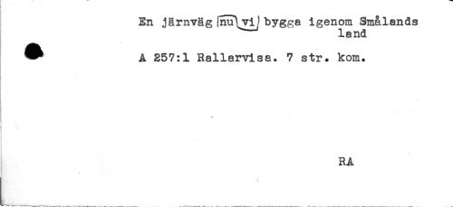 //// En järnväg[nu)vi)bygga igenom Smalands //// ^ land //// ^ A 257:1 Rallarvisa. 7 str. kom. //// * //// j ////