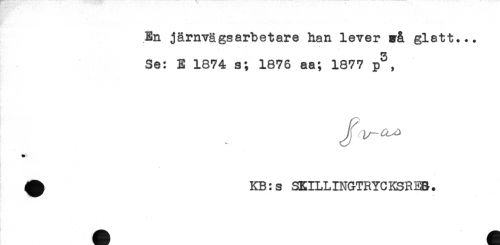 //// En järnvägsarbetare han lever ar& glatt... //// . ^ - ! ^ //// Se: E 1874 s; 1876 aa; 1877 p^, //// ^ KB:s SKILLINGTRYCBSPEB. ////
