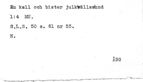 //// En kall och bister julkbällssthnd //// - //// 1:4 MU. //// i //// S.L.S. 50 s. 61 nr 53. //// N. //// AB 0 ////