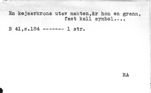 //// - //// En kejsarkrona utav makten,är hon en grann, //// fast kall symbol.... //// * //// t * - * * r //// B 41,s.184----1 str. //// ) //// i //// i //// i //// i ////