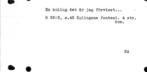 //// En koling det är jag förvisat... //// B 55:3, s.43 Kolingens fantasi. 4 str* //// kom. //// - //// ! //// RA //// ' ////