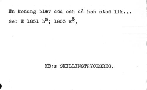 //// En konung blev död och då han stod lik... //// Se: E 1851 h^; 1853 x^, //// i //// i //// t //// t //// KB:s SKILLINGTRYCKSREG. //// * ////