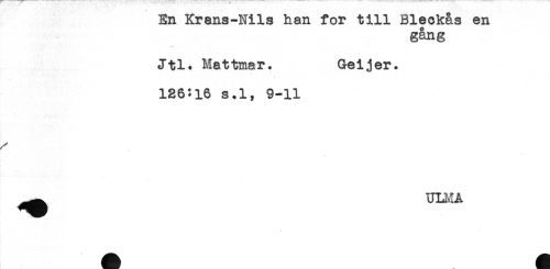 //// En Krans-Nils han for till Bleckas en //// gång //// Jtl. Mattmar. Geijer. //// 126:16 s.l, 9-11 //// ^^ umA ////