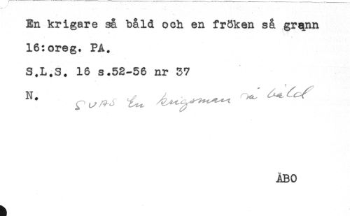 //// En krigare sa båld och en fröken så grqnn //// # //// 16:oreg. PA. //// S.L.S. 16 s.52-56 nr 57 ////