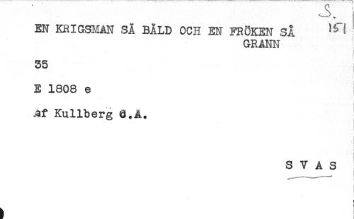//// EN KRIGSMAN SÅ BÅLD OCH EN FRÖKEN SA //// GRANN //// 35 //// E 1808 e //// ^f Kullberg Ö.A. //// t //// i //// S V A S //// ) //// i //// ^ t ////