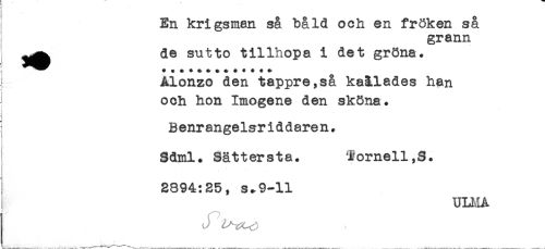 //// ^^ de sutto tillhopa i det gröna. //// * v ^ * ^^ V v * V w V //// Ålonzo den tappre,så kaälades han //// och hon Imogene den sköna. //// i //// B enrangelsr i d dare n. //// - //// ' Sdml. Sättersta. ^ornell,S. //// < //// i //// 2894:25, s*9-ll //// ! ULI.1A //// J //// . - . . -t .. -"** ^ -T-.-r.-___t- ... . ^^ T ^ -- '--- ----- ---. . _____S*. -_____- ..__-_____-i ////