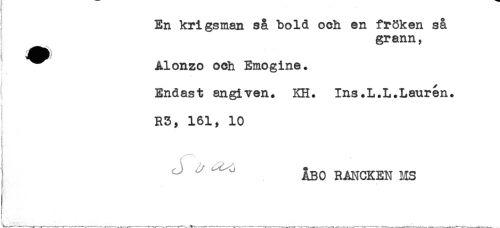 //// ^^ Alonzo och Emogine. //// Endast angiven. KH. Ins.L.L.Lauren. //// R3, 161, 10 //// i //// ÅBO RANCKEN MS //// ! ////