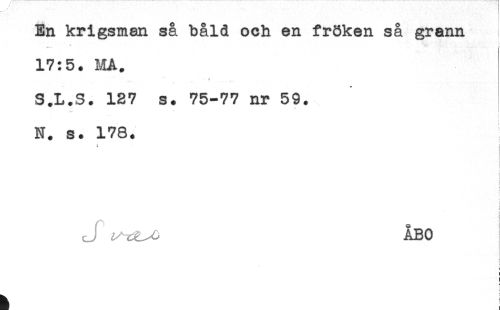 //// En krigsman sa båld och en fröken så grann //// ** ^ //// 17:5. MA. //// S.L.S. 127 s. 75-77 nr 59. //// < //// * < //// <- t //// N. s. 178. //// ; //// t //// t //// ( //// t //// < //// ! //// ! //// U ÅBO ! //// : //// ! //// ! //// * //// } ////