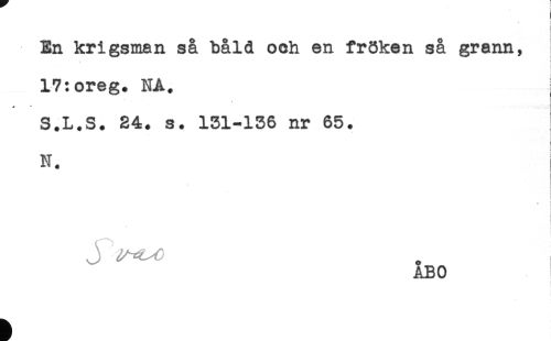 //// r //// ^ ! //// En krigsman så båld och en fröken så grann, //// - //// ! //// -t //// 17:oreg. NA. } //// * //// ^ * //// S.L.S. 24. s. 131-156 nr 65. //// t //// N. //// j ////