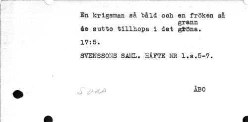 //// En krigsman så båld och en fröken så //// grann //// åe sutto tillhopa i det gRöna. //// 17:5. //// ' //// SVENSSONS SAML. HÄFTE NR l.s.5-7. //// . ////