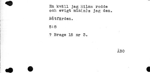 //// ^ En kväll jag Hilma rodde //// och evigt min(n)s jag den. //// &. //// Båtfärden. //// ' 5:8 //// ? Brage 15 nr 3. //// ) //// ! //// ÅBO //// ! ////