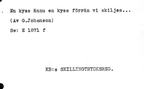//// . En kyss ännu en kyss förrän vi skiljes... //// (Av G.Johanson) //// Se: E 1871 f //// * //// KB:s SKILLINGTRYCKSREG. ////