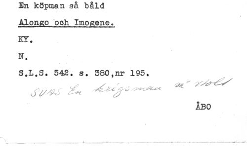 //// Alongo och Imogene. //// KY. //// N. //// -< //// S.L.S. 542. s. 380,nr 195. //// ÅBO ////