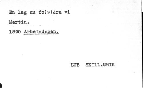 //// En lag nu fo(r)dra vi //// Martin. //// ..... - * //// 1890 Arbetsdagen. //// LUB SKILL .yNIK ////