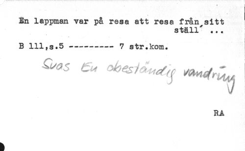 //// En lappman var på resa att resa från sitt //// ställ* ... //// j . . j //// B 111,s.5 -----7 str.kom. //// V //// RA ////