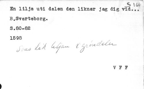 //// * Jy t //// En lilja uti dalen den liknar jag dig vid... //// B.Svarteborg. //// * //// S.80-82 //// 1598 //// r //// t //// c //// V F F ////