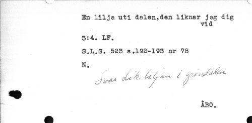 //// En lilja uti dalen,den liknar jag dig //// vid //// 3:4. LF. //// t' //// S.L.S. 523 s.192-193 nr 78 //// ) ////
