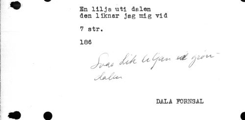 //// I ^^ En lilja uti delen //// den liknar jag mig vid //// 7 str. //// 186 //// DALA FORNSAL ////