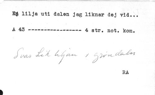 //// E# lilja uti dalen jag liknar dej vid... //// - //// . - . ^ //// A 43-----4 str. not. kom. //// RA ////