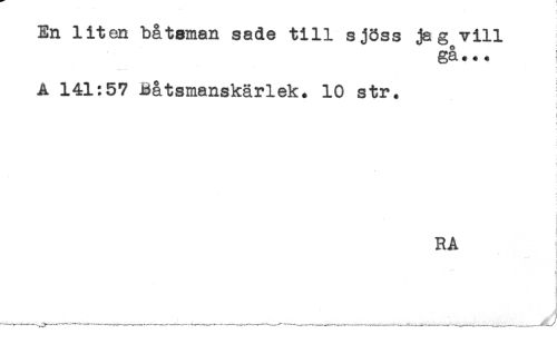 //// En liten båteman sade till sjöss jag vill //// gå... //// < //// A 141:57 Båtsmanskärlek. 10 str. //// i //// < //// RA //// ! //// ! ////