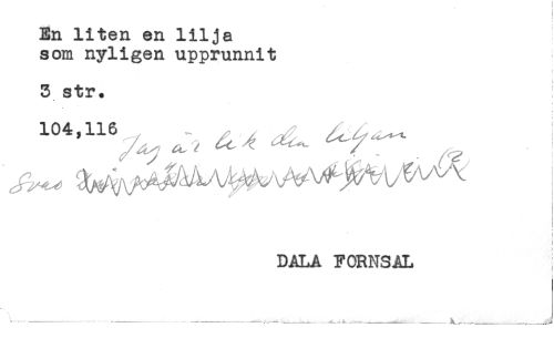 //// En liten en lilja //// som nyligen upprunnit //// 3 str. //// ! //// ! //// DALA EORNSAL //// ! //// **....* -----. ----,-t--- ////