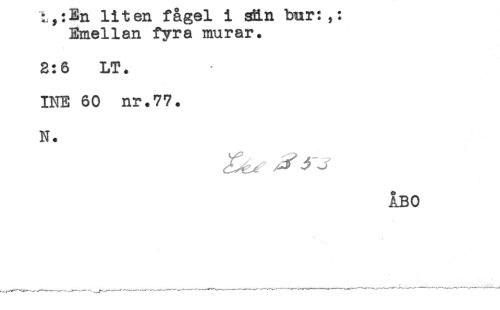 //// L , ; -HJ.1 JLi U OJ.A JL a.g,C!JL JL CHJ.JUL * ; ' //// Emellan fyra murar. //// 2:6 LT. //// INE 60 nr.77. //// N. //// ÅBO ////